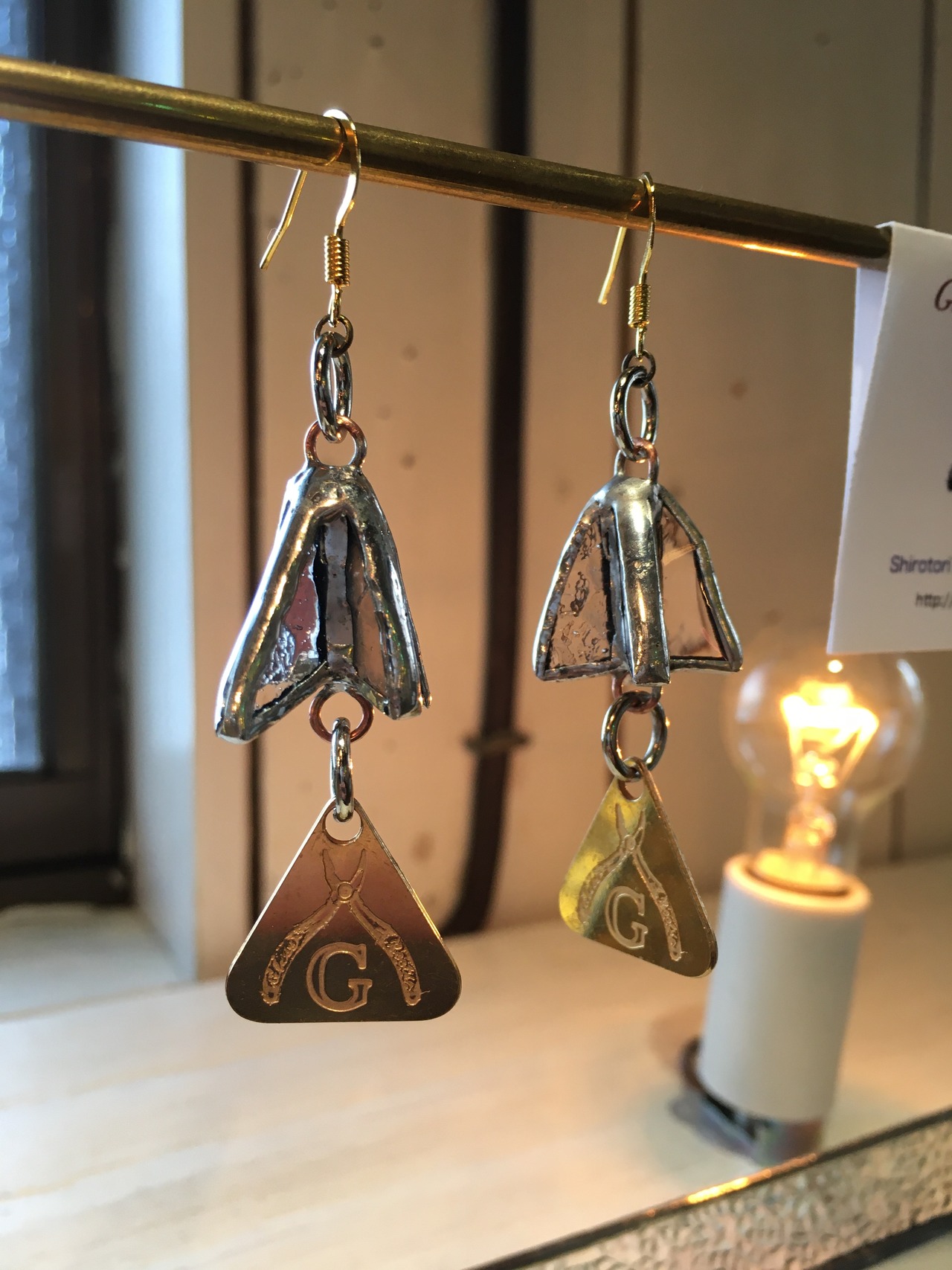 コパーテープ工法で製作した、ステンドグラスのピアスです。