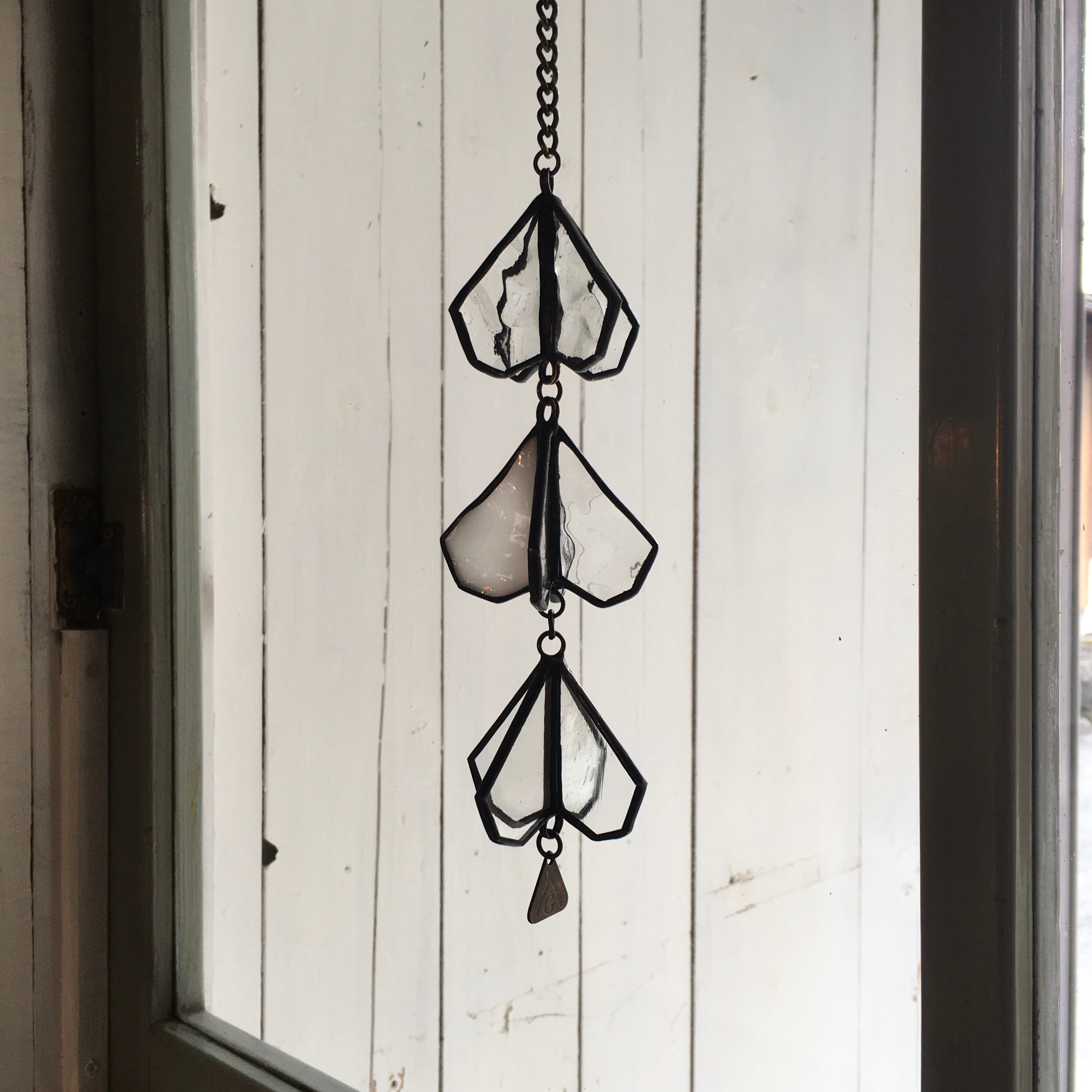 窓辺や光の通る場所に吊るすとキラキラ色や光の屈折が美しい、グラスルーツ 定番のステンドグラス小物です。